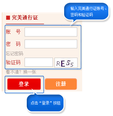 1. 请用将要绑定的账号登录passport.wanmei.com。输入完美通行证账号、密码和验证码,点击“登录”按钮。